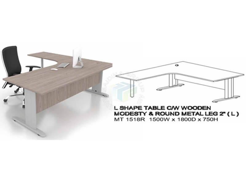L shape Office Tables c/w J & Round Metal Leg | Siri MT-R