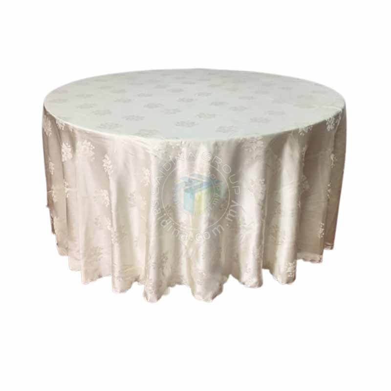 These round tablecloths are made from thick, high-quality Damask fabric, perfect for VVIP dining tables. The elegant floral patterns and fine finishing give them an exclusive and luxurious appearance.