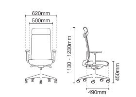 Dimensions: 600 W × 490 D × 1130–1230 H