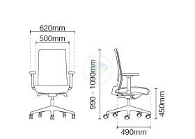 Dimensions: 600 mm (W) x 490 mm (D) x 990–1090 mm (H)