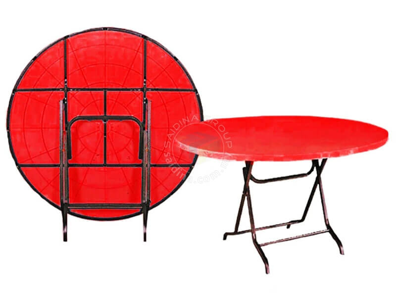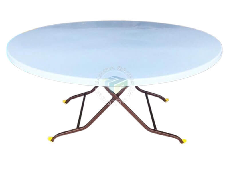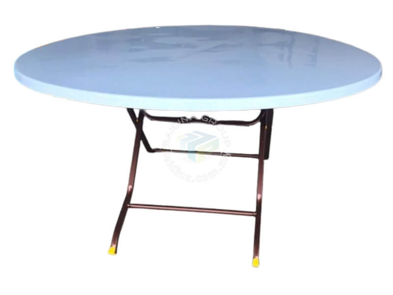 Round Folding Plastic Table with 4 feet & 5 feet diameter, featuring hollow steel legs (square tube). Versatile, durable, and easy to store.