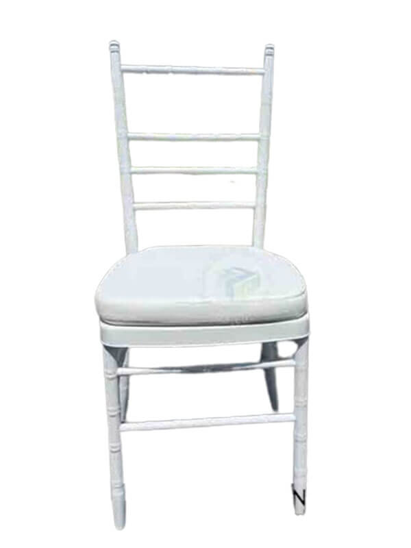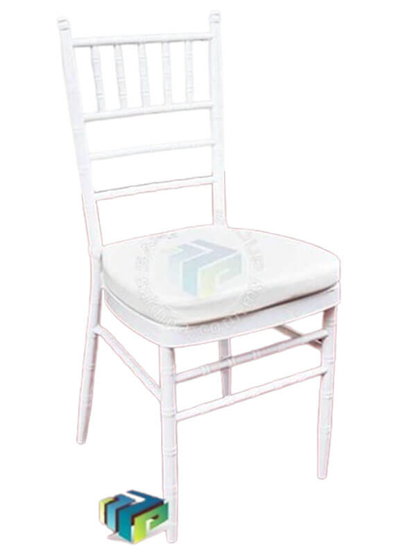 High-quality Chiavari chair with a 1.2 mm thick metal (steel) frame, making it strong and durable. The chair comes with a premium cushion matched to the chair color. Available in White, Gold, and Transparent finishes. This quality Chiavari chair is widely used by event management services such as canopy setups, catering, banquet halls, and indoor events.