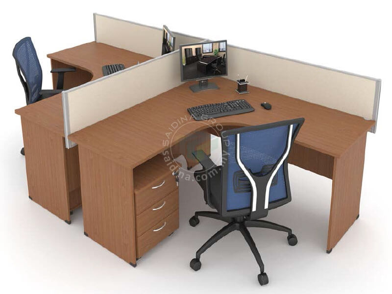 Workstation (2 seater) c/w L shape table, 20mm divider & pedestal | Model : SGWS-FL203