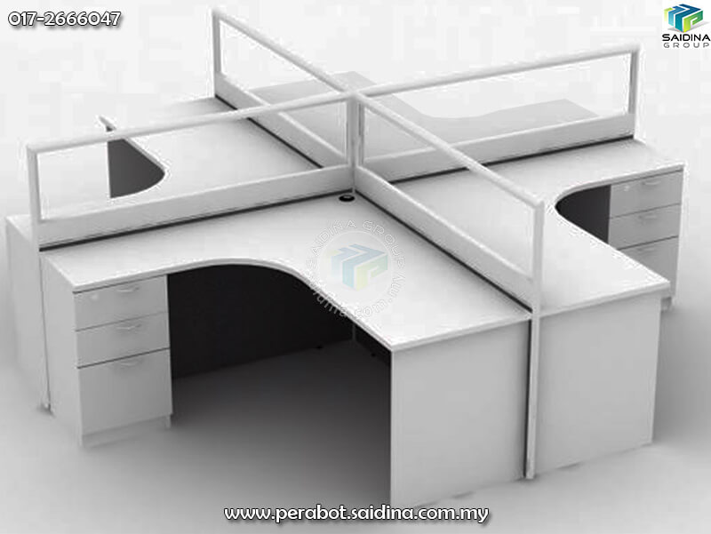 Workstation (4 seater) c/w L shape table, Half glass partition & Fixed 2D+1F Pedestal | Model SGWS-GL421