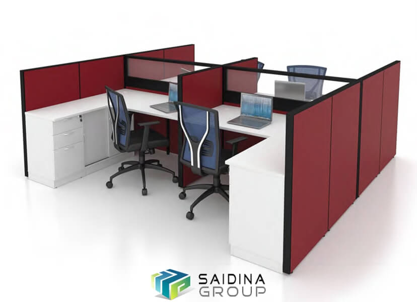 Workstation (4 seater) c/w Rectangular shape table & cabinet | Model SGWS-FR403