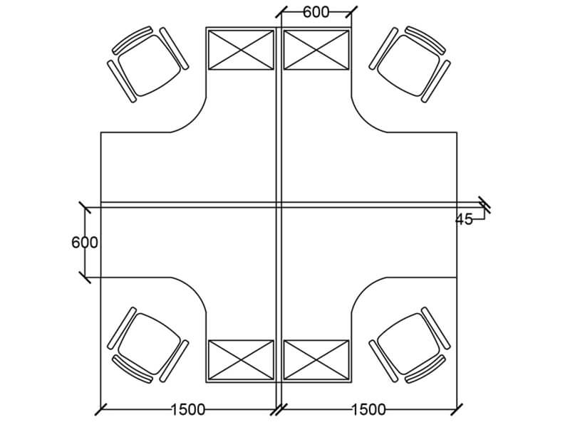 Workstation (cluster of 4) c/w L shape table, Half glass & Full Board partition, J Metal Leg & Mobile Pedestal 3D | Model SGWS-iL404